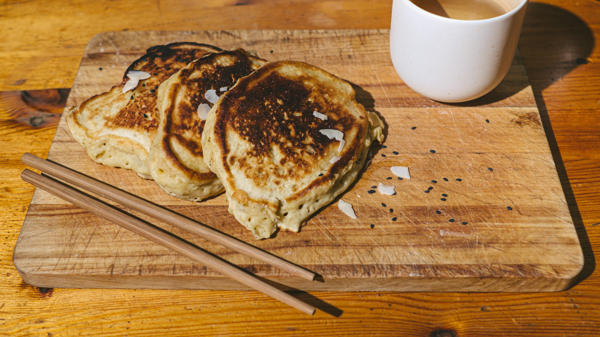Es war halb neun am Morgen, ich brauchte ein Frühstück und so wurde das Krummobst seinem neuen Verwendungszweck als Grundlage für Pancakes zugeführt.