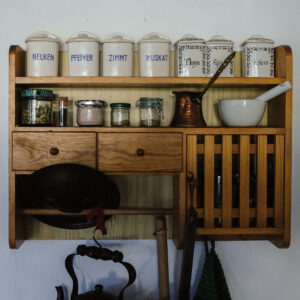 Einer der ersten Eindrücke die Mensch in meinen Zimmern hat ist wohl, dass wenig ‚moderne‘ Gefäße herumstehen und stattdessen alles in Kisten, Dosen und Gläsern ohne Markennamen umgefüllt steht.